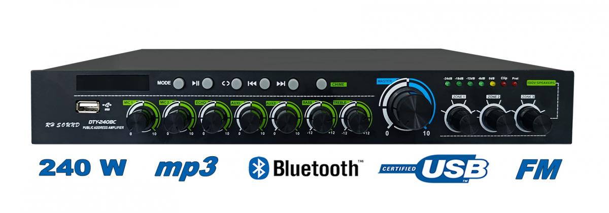 Modern, kis méretű digitális (Class-D) hangosítóközpont sokoldalú hangosításokra, beépített USB MP3-lejátszóval és MP3-lejátszással Bluetooth-on keresztül.