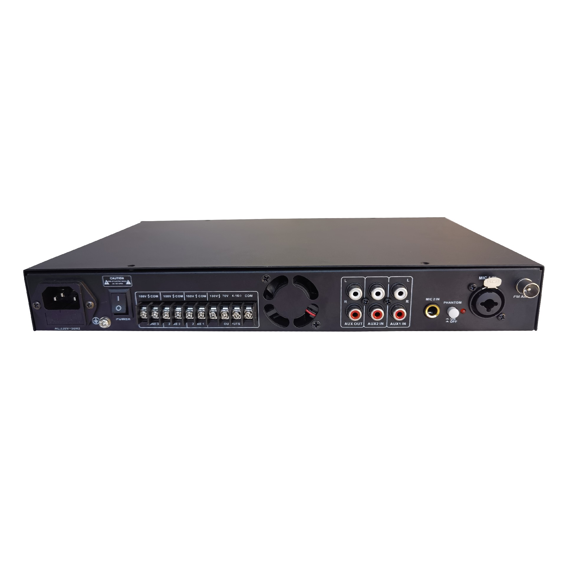 • 3 szabályozható zóna kimenet (100 V) minden zóna külön hangszabályozással,